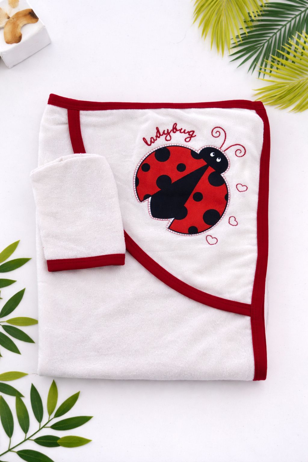 - Marienkäfer – Roter Rand mit entzückender Marienkäferstickerei und Herzen